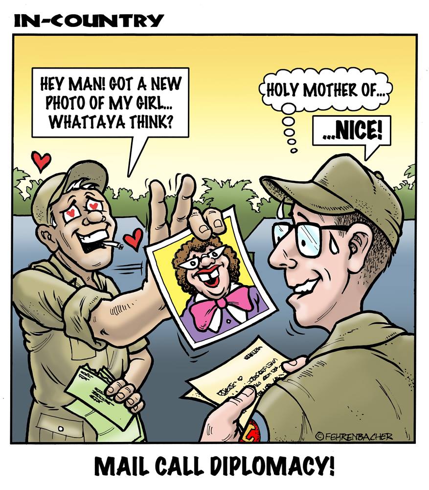 Phil enlisted in the Army in 1965 where you served for years in Vietnam. He became a graphic designer and has worked for the state of Oregon for 26 years. He retired in 2003 and started the Cartoon "In-Country". The cartoons reflect his experiences during his tour of duty in South Vietnam.